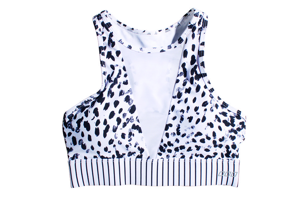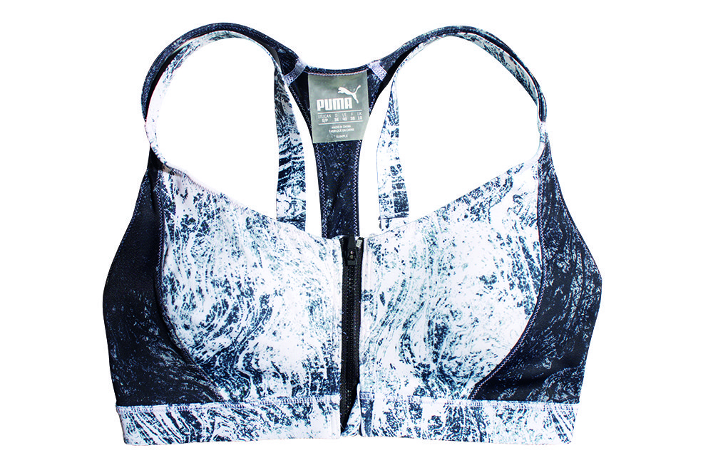 Though not as good-looking as the other bras tested, this no-frills bra functions well during speed work and marathon training. Mesh panels – on the back and between the breasts – effectively ‘dump’ heat, and two-ply fabric facilitates extra-quick drying.