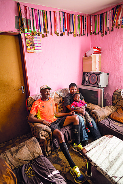 Monisi lived in Pennyville close to Westbury – far from Soweto and the suburbs, the most likely sources for a guide. So in training, he ran alone. Up and down, on a straight, one-kilometre section in his local park. He woke up at 3am and trained until 6am. It was the quietest time of the day, devoid of noisy traffic that could hamper his senses. To avoid bumping into things, he used a combination of hearing, touch and a cane. And so his passion for long-distance running was born – Monisi began to enter events.