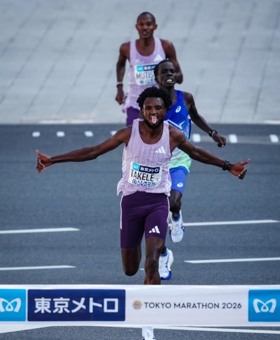 Tadese Takele of Ethiopia defended his title at the 2026 Tokyo Marathon in an incredible three-way sprint finish with Kenyans Geoffrey Toroitich and Alexander Mutiso, as both Takele and Toroitich clocked 2:03:37 and Mutiso recorded a final time of 2:03:38 for third. Fellow Kenyan Daniel Mateiko made it four men under 2:04 with his 2:03:44 performance.