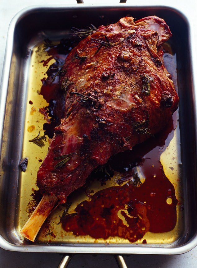 - Take the lamp and rub with olive oil and season liberally. Place on top of the veg and pour in the wine and stock, then cover tightly with tin foil.