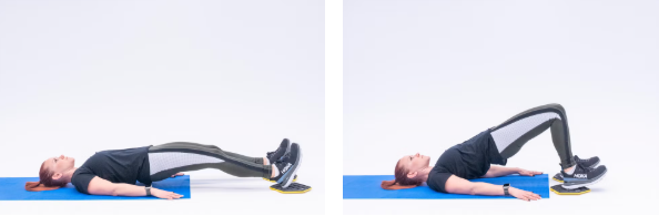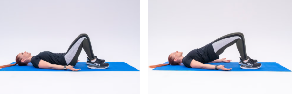 - Slowly lift hips, engaging glutes, and squeezing abs. Avoid arching back.