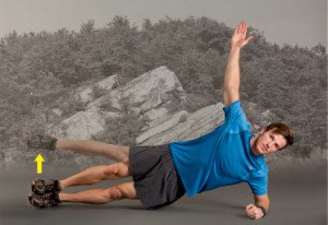 - From a plank position, rotate to one side, forearm on the floor, hip raised.