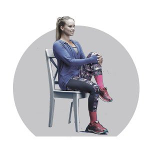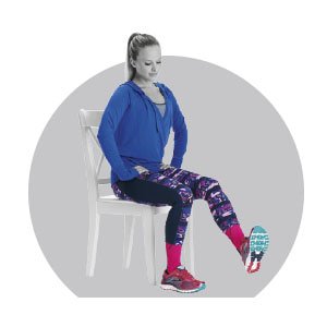 In a plane seat or passenger seat of a car, raise your left knee and move your foot in a circle 20 times. Then reverse direction another 20 times. Repeat with the other foot.