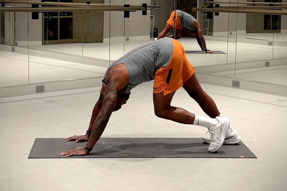 3. Downdog with Foot Pedal